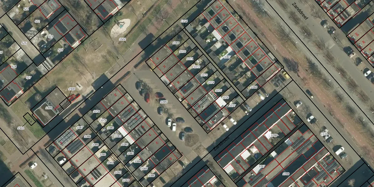 Zandroos 28 is gelegen op kadastraal perceel STR03F1073. Deze kadastrale aanduiding is uniek en wordt gebruikt door het Kadaster om eigendomsrechten en andere zakelijke rechten vast te leggen. Het perceel maakt onderdeel uit van de kadastrale gemeente Strijp.
