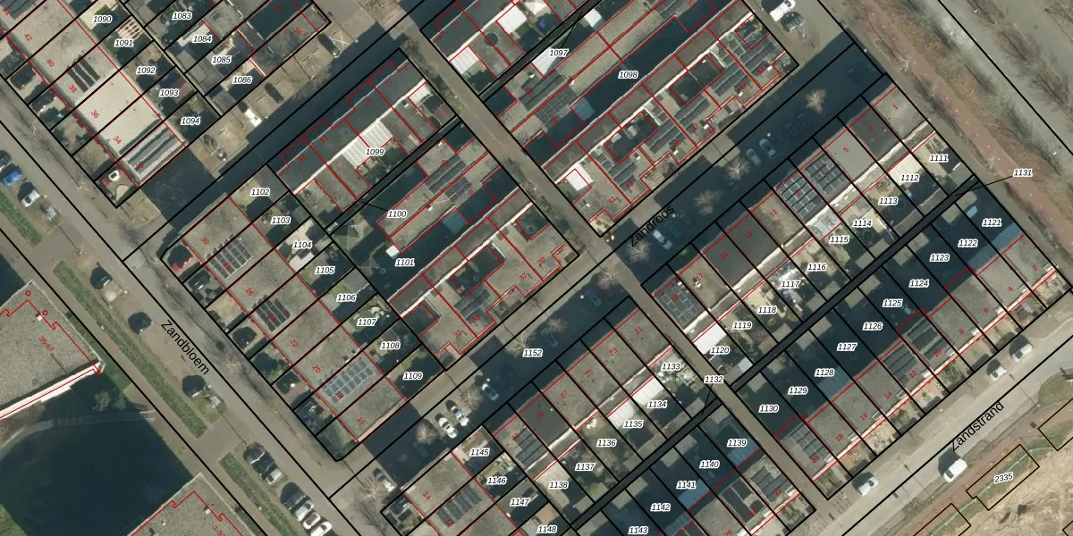 Het perceel waarop Zandroos 39 staat heeft een oppervlakte van 1092 m². Dit is een zeer groot perceel. De perceeloppervlakte wordt geregistreerd door het Kadaster. Gedetailleerde informatie over de maten van dit perceel kunt u vinden in het rapport Kadastrale kaart met maatvoering van Zandroos 39.