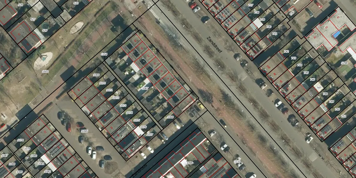 Zandroos 6 is gelegen op kadastraal perceel STR03F1067. Deze kadastrale aanduiding is uniek en wordt gebruikt door het Kadaster om eigendomsrechten en andere zakelijke rechten vast te leggen. Het perceel maakt onderdeel uit van de kadastrale gemeente Strijp.