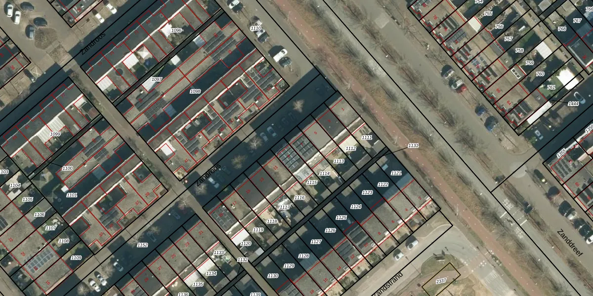 Zandroos 7 is gelegen op kadastraal perceel STR03F1114. Deze kadastrale aanduiding is uniek en wordt gebruikt door het Kadaster om eigendomsrechten en andere zakelijke rechten vast te leggen. Het perceel maakt onderdeel uit van de kadastrale gemeente Strijp.