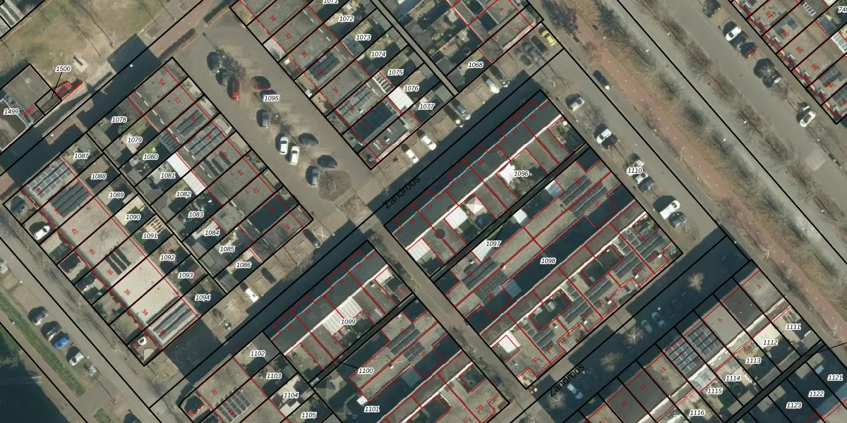 Zandroos 73 is gelegen op kadastraal perceel STR03F1096. Deze kadastrale aanduiding is uniek en wordt gebruikt door het Kadaster om eigendomsrechten en andere zakelijke rechten vast te leggen. Het perceel maakt onderdeel uit van de kadastrale gemeente Strijp.