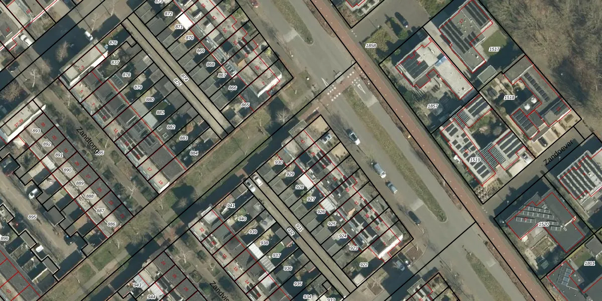 Zandschuit 47 is gelegen op kadastraal perceel STR03F930. Deze kadastrale aanduiding is uniek en wordt gebruikt door het Kadaster om eigendomsrechten en andere zakelijke rechten vast te leggen. Het perceel maakt onderdeel uit van de kadastrale gemeente Strijp.