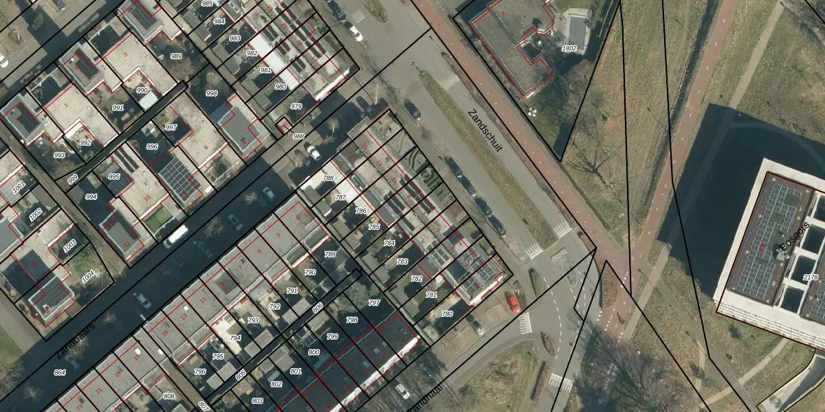 Zandschuit 9 is gelegen op kadastraal perceel STR03F785. Deze kadastrale aanduiding is uniek en wordt gebruikt door het Kadaster om eigendomsrechten en andere zakelijke rechten vast te leggen. Het perceel maakt onderdeel uit van de kadastrale gemeente Strijp.