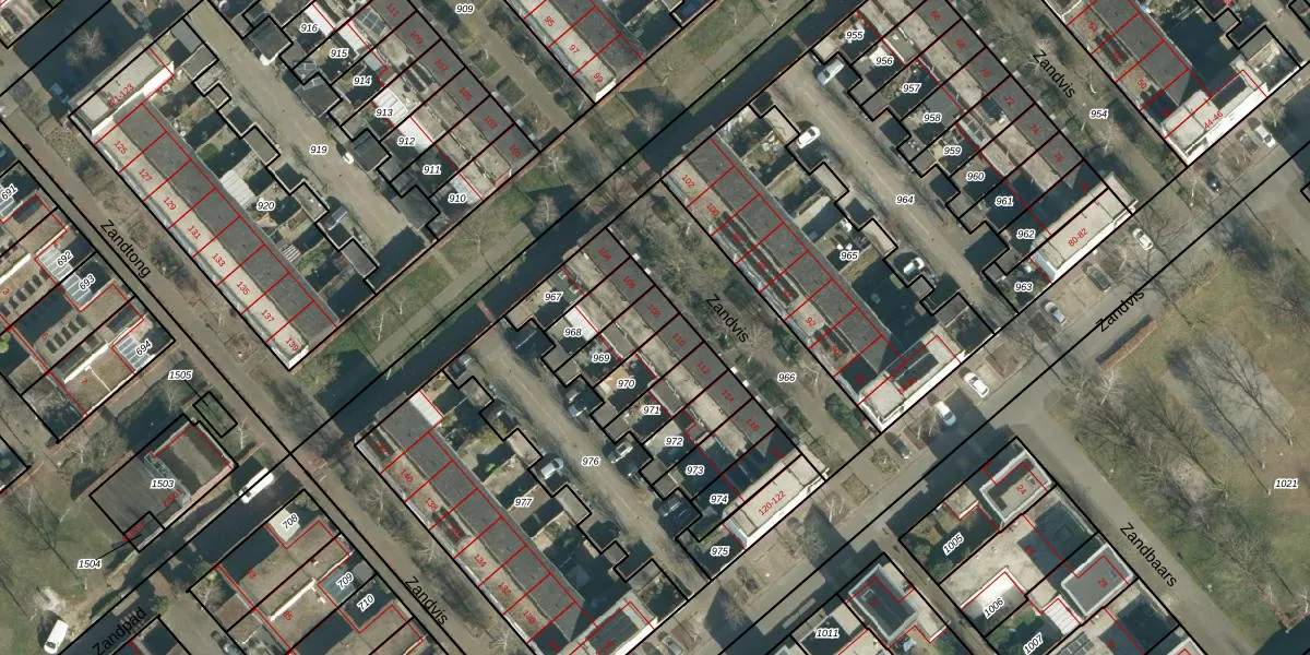 Het perceel waarop Zandvis 108 staat heeft een oppervlakte van 109 m². Dit is een middelgroot perceel. De perceeloppervlakte wordt geregistreerd door het Kadaster. Gedetailleerde informatie over de maten van dit perceel kunt u vinden in het rapport Kadastrale kaart met maatvoering van Zandvis 108.