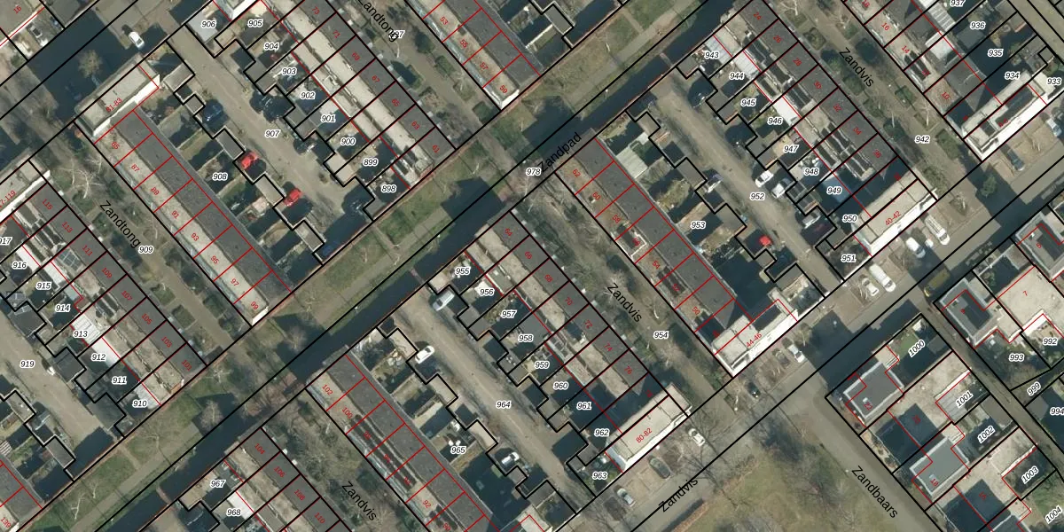 Het perceel waarop Zandvis 66 staat heeft een oppervlakte van 109 m². Dit is een middelgroot perceel. De perceeloppervlakte wordt geregistreerd door het Kadaster. Gedetailleerde informatie over de maten van dit perceel kunt u vinden in het rapport Kadastrale kaart met maatvoering van Zandvis 66.