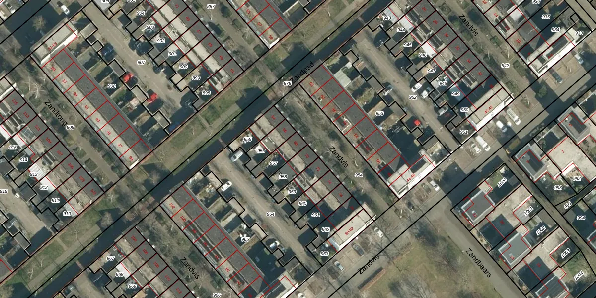 Het perceel waarop Zandvis 68 staat heeft een oppervlakte van 109 m². Dit is een middelgroot perceel. De perceeloppervlakte wordt geregistreerd door het Kadaster. Gedetailleerde informatie over de maten van dit perceel kunt u vinden in het rapport Kadastrale kaart met maatvoering van Zandvis 68.