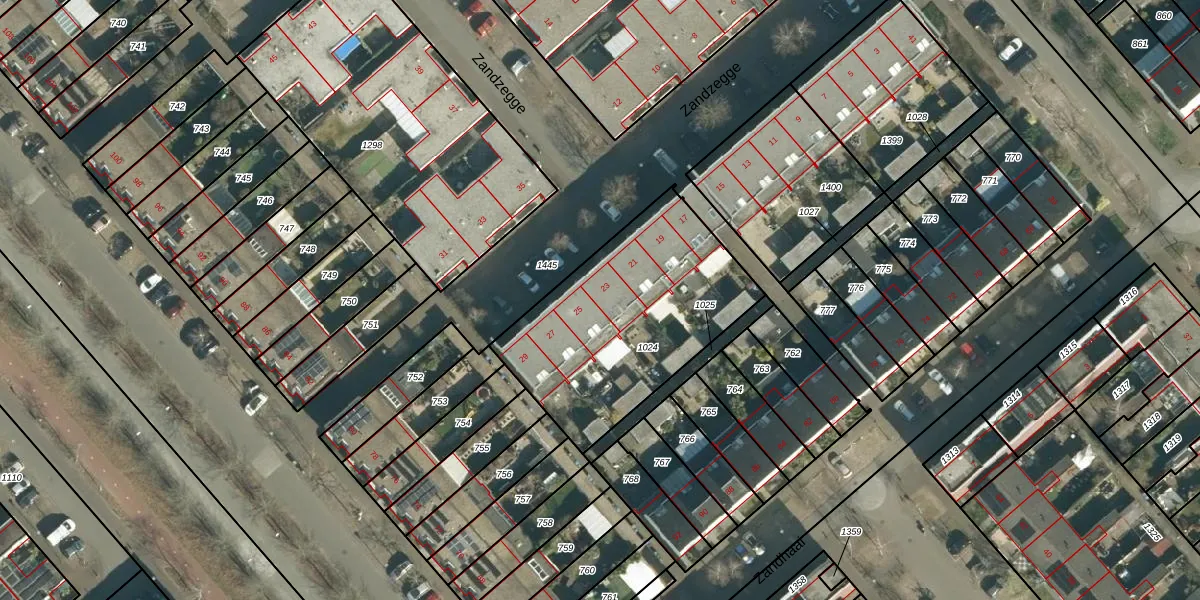 Zandzegge 23 is gelegen op kadastraal perceel STR03F1024. Deze kadastrale aanduiding is uniek en wordt gebruikt door het Kadaster om eigendomsrechten en andere zakelijke rechten vast te leggen. Het perceel maakt onderdeel uit van de kadastrale gemeente Strijp.