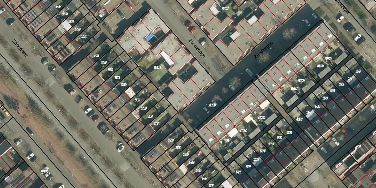 Zandzegge 33 is gelegen op kadastraal perceel STR03F1298. Deze kadastrale aanduiding is uniek en wordt gebruikt door het Kadaster om eigendomsrechten en andere zakelijke rechten vast te leggen. Het perceel maakt onderdeel uit van de kadastrale gemeente Strijp.