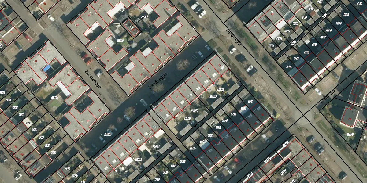 Zandzegge 9 is gelegen op kadastraal perceel STR03F1400. Deze kadastrale aanduiding is uniek en wordt gebruikt door het Kadaster om eigendomsrechten en andere zakelijke rechten vast te leggen. Het perceel maakt onderdeel uit van de kadastrale gemeente Strijp.