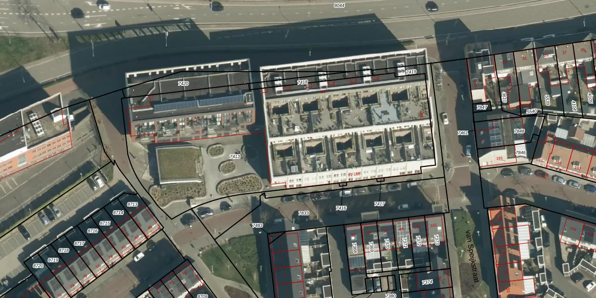 Het adres is gelegen op perceel 7413 in de sectie G en de kadastrale gemeente Woensel. De kadastrale aanduiding is aldus WSL01-G-7413. De gemiddelde perceeloppervlakte in de kadastrale gemeente Woensel is 1038,24 m². Dit perceel is met zijn 3580 m² dus groter dan gemiddeld. Het kleinste perceel in de kadastrale gemeente is 0 m² groot. De grootste perceeloppervlakte is 74,9 ha. Er zijn 56 adressen aanwezig op het perceel. De huidige grenzen van het perceel zijn digitaal in de Basisregistratie Kadaster (BRK) geregistreerd op 13-11-2017.