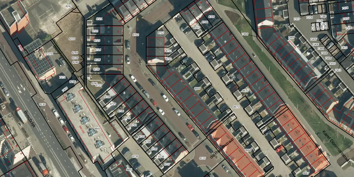 Het adres ligt op het perceel WSL01-G-8669, dat zich in de kadastrale gemeente Woensel bevindt. Het perceel is 860 m² groot. Dat is kleiner dan de gemiddelde perceeloppervlakte in Woensel, dat op 1038,98 m² ligt. De grootste perceeloppervlakte in de kadastrale gemeente is 74,9 ha. De kleinste oppervlakte bedraagt 0 m². Er zijn 8 adressen aanwezig op het perceel. In de Basisregistratie Kadaster (BRK) werden de grenzen van het perceel geregistreerd op 12-10-2022.