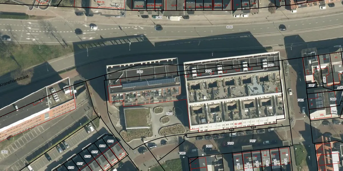 Het adres is gelegen op perceel 7413 in de sectie G en de kadastrale gemeente Woensel. De kadastrale aanduiding is aldus WSL01-G-7413. De gemiddelde perceeloppervlakte in de kadastrale gemeente Woensel is 1038,24 m². Dit perceel is met zijn 3580 m² dus groter dan gemiddeld. Het grootste perceel in de kadastrale gemeente is 74,9 ha. Het kleinste perceel heeft een oppervlakte van 0 m². Op het perceel liggen in totaal 56 adressen. De laatste wijziging in het de Basisregistratie Kadaster (BRK) was op 13-11-2017.