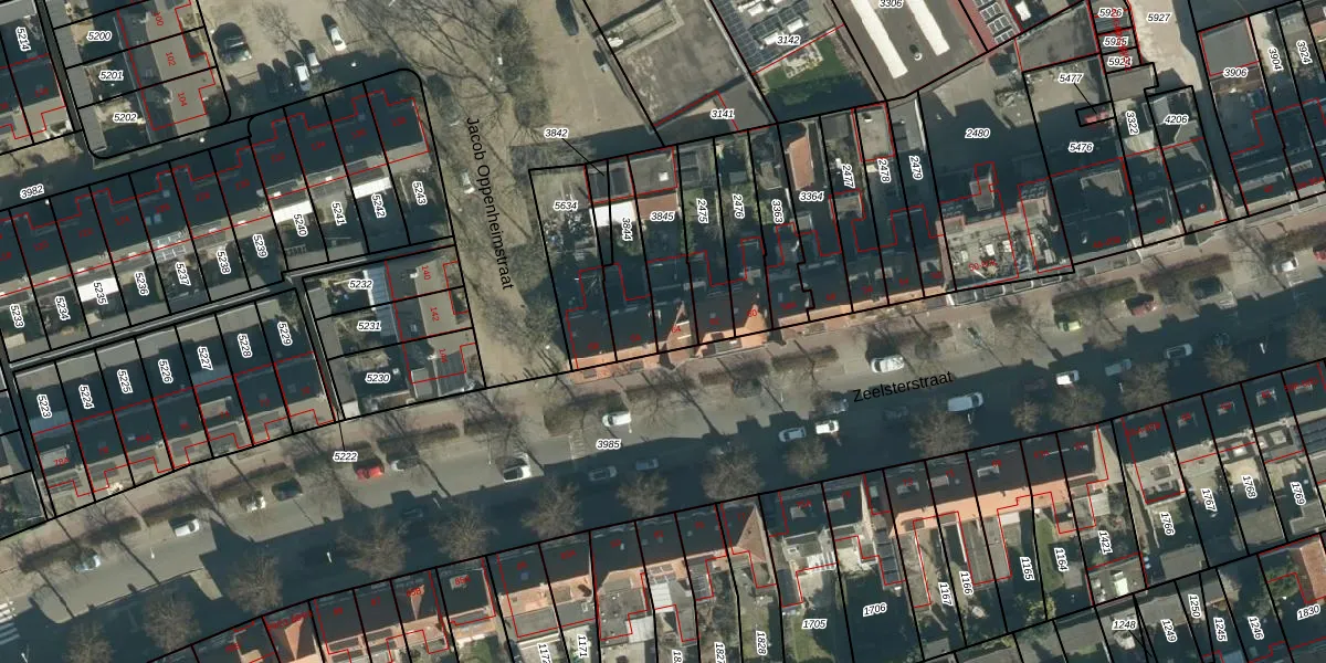 Gebruik de zoekbalk of klik op een perceel voor informatie over de adressen binnen dit perceel.