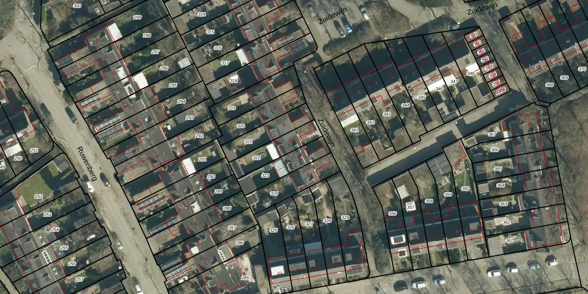 Het perceel waarop Zuidewijn 36 staat heeft een oppervlakte van 207 m². Dit is een middelgroot perceel. De perceeloppervlakte wordt geregistreerd door het Kadaster. Gedetailleerde informatie over de maten van dit perceel kunt u vinden in het rapport Kadastrale kaart met maatvoering van Zuidewijn 36.