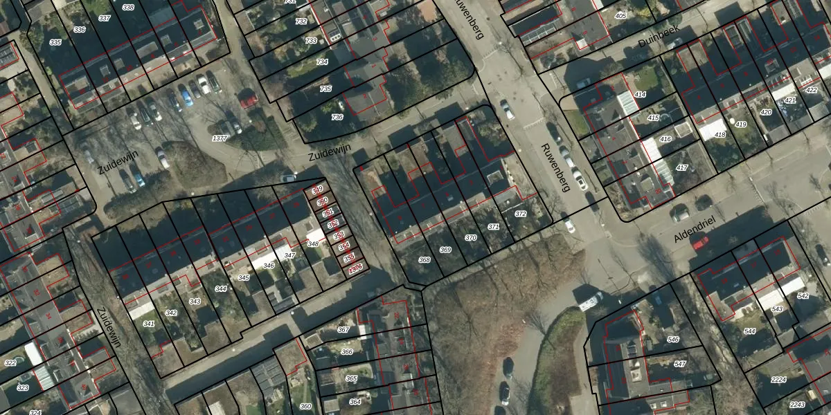 Het perceel waarop Zuidewijn 7 staat heeft een oppervlakte van 208 m². Dit is een middelgroot perceel. De perceeloppervlakte wordt geregistreerd door het Kadaster. Gedetailleerde informatie over de maten van dit perceel kunt u vinden in het rapport Kadastrale kaart met maatvoering van Zuidewijn 7.