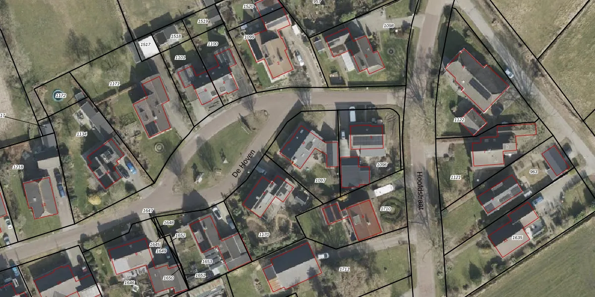 Het perceel waarop De Hoven 3 staat heeft een oppervlakte van 542 m². Dit is een groot perceel. De perceeloppervlakte wordt geregistreerd door het Kadaster. Gedetailleerde informatie over de maten van dit perceel kunt u vinden in het rapport Kadastrale kaart met maatvoering van De Hoven 3.