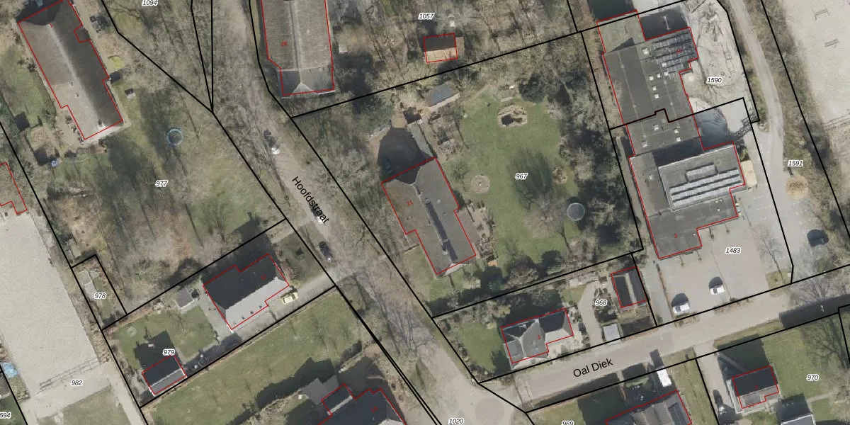 Het perceel waarop Hoofdstraat 21 staat heeft een oppervlakte van 3310 m². Dit is een zeer groot perceel. De perceeloppervlakte wordt geregistreerd door het Kadaster. Gedetailleerde informatie over de maten van dit perceel kunt u vinden in het rapport Kadastrale kaart met maatvoering van Hoofdstraat 21.