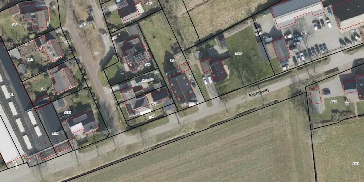 Het perceel waarop Kampweg 4 staat heeft een oppervlakte van 880 m². Dit is een groot perceel. De perceeloppervlakte wordt geregistreerd door het Kadaster. Gedetailleerde informatie over de maten van dit perceel kunt u vinden in het rapport Kadastrale kaart met maatvoering van Kampweg 4.