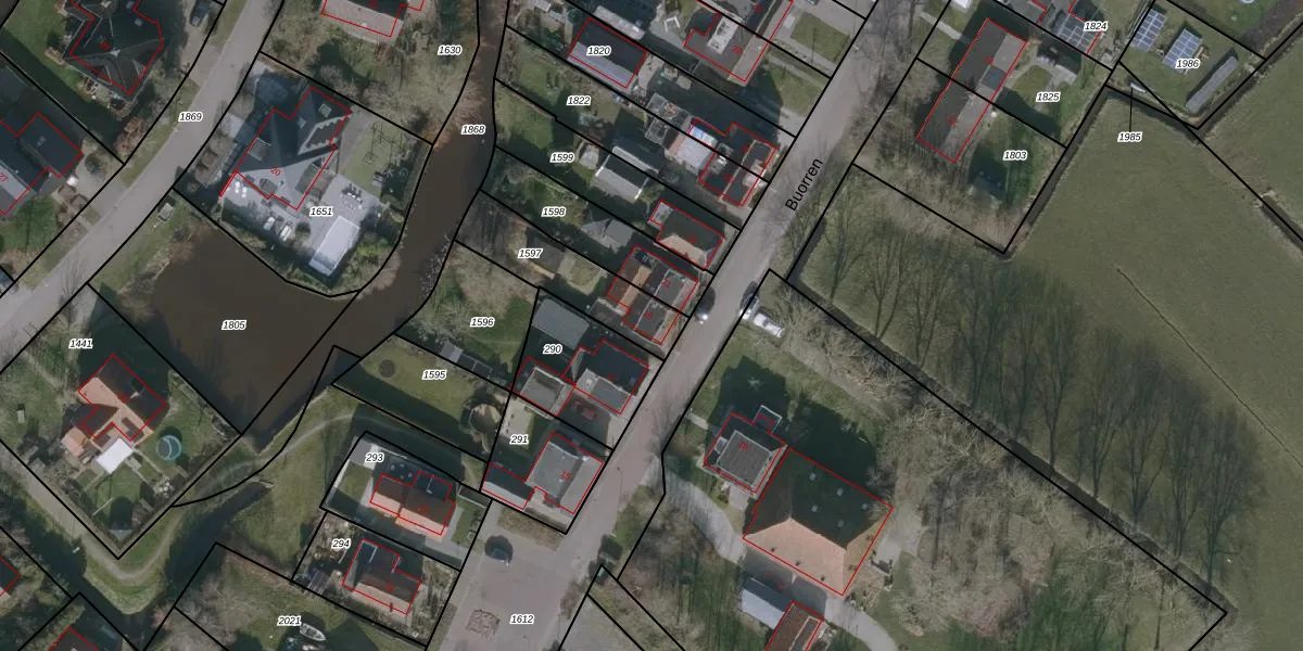 Het perceel waarop Buorren 19 staat heeft een oppervlakte van 297 m². Dit is een middelgroot perceel. De perceeloppervlakte wordt geregistreerd door het Kadaster. Gedetailleerde informatie over de maten van dit perceel kunt u vinden in het rapport Kadastrale kaart met maatvoering van Buorren 19.