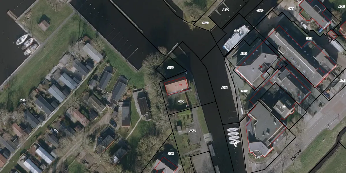 Het perceel waarop Mardyk 7-B staat heeft een oppervlakte van 835 m². Dit is een groot perceel. De perceeloppervlakte wordt geregistreerd door het Kadaster. Gedetailleerde informatie over de maten van dit perceel kunt u vinden in het rapport Kadastrale kaart met maatvoering van Mardyk 7-B.
