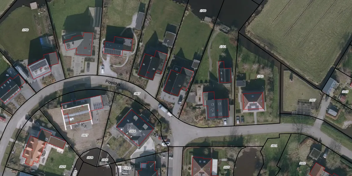 Het perceel waarop Poeldyk 6 staat heeft een oppervlakte van 1430 m². Dit is een zeer groot perceel. De perceeloppervlakte wordt geregistreerd door het Kadaster. Gedetailleerde informatie over de maten van dit perceel kunt u vinden in het rapport Kadastrale kaart met maatvoering van Poeldyk 6.