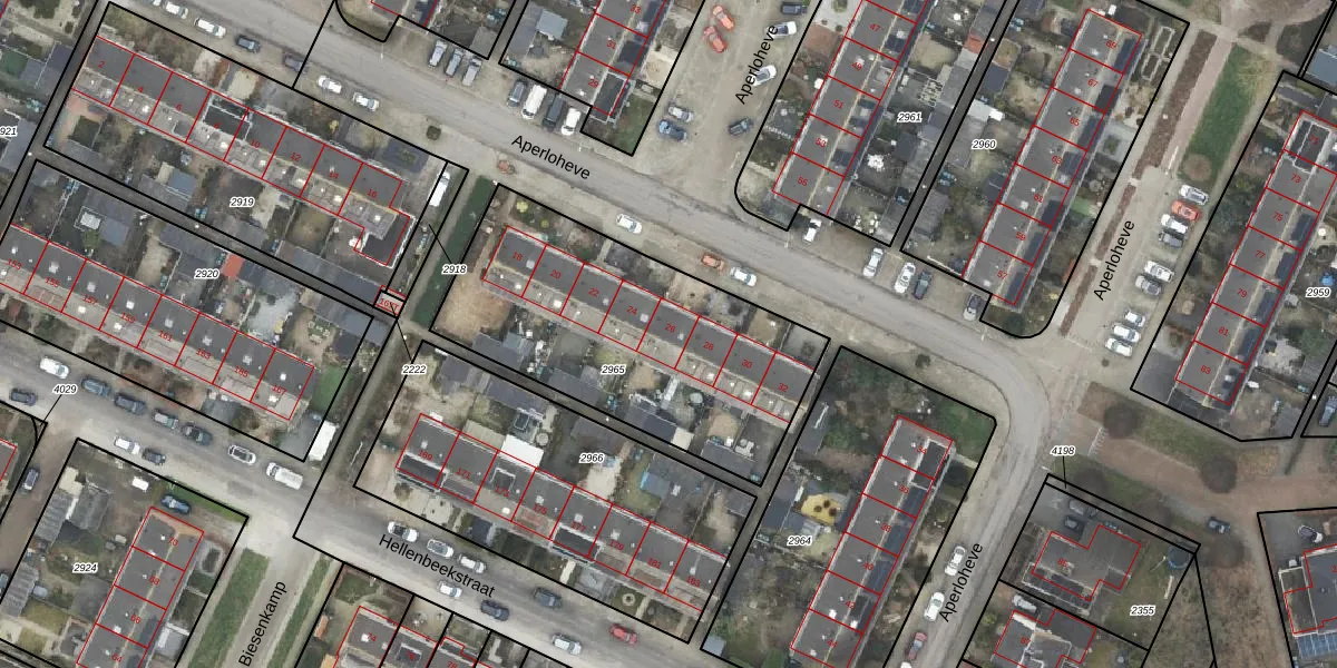 Het perceel waarop Aperloheve 26 staat heeft een oppervlakte van 1336 m². Dit is een zeer groot perceel. De perceeloppervlakte wordt geregistreerd door het Kadaster. Gedetailleerde informatie over de maten van dit perceel kunt u vinden in het rapport Kadastrale kaart met maatvoering van Aperloheve 26.