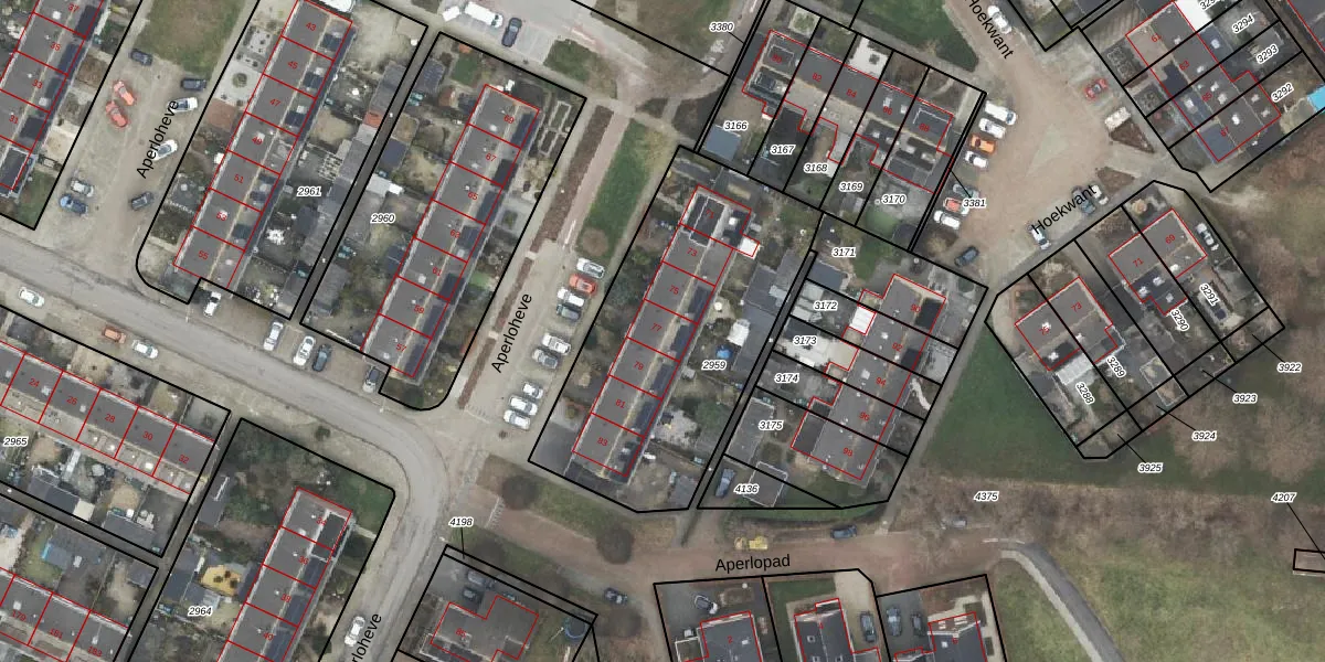 Het perceel waarop Aperloheve 77 staat heeft een oppervlakte van 1288 m². Dit is een zeer groot perceel. De perceeloppervlakte wordt geregistreerd door het Kadaster. Gedetailleerde informatie over de maten van dit perceel kunt u vinden in het rapport Kadastrale kaart met maatvoering van Aperloheve 77.