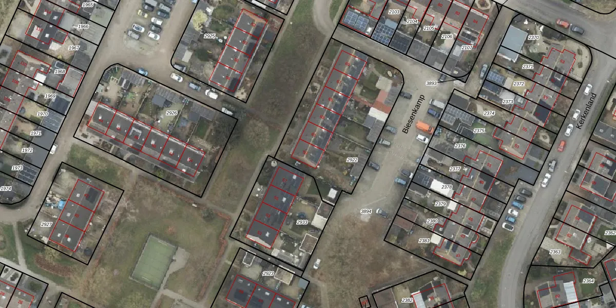 Het perceel waarop Biesenkamp 59 staat heeft een oppervlakte van 1249 m². Dit is een zeer groot perceel. De perceeloppervlakte wordt geregistreerd door het Kadaster. Gedetailleerde informatie over de maten van dit perceel kunt u vinden in het rapport Kadastrale kaart met maatvoering van Biesenkamp 59.