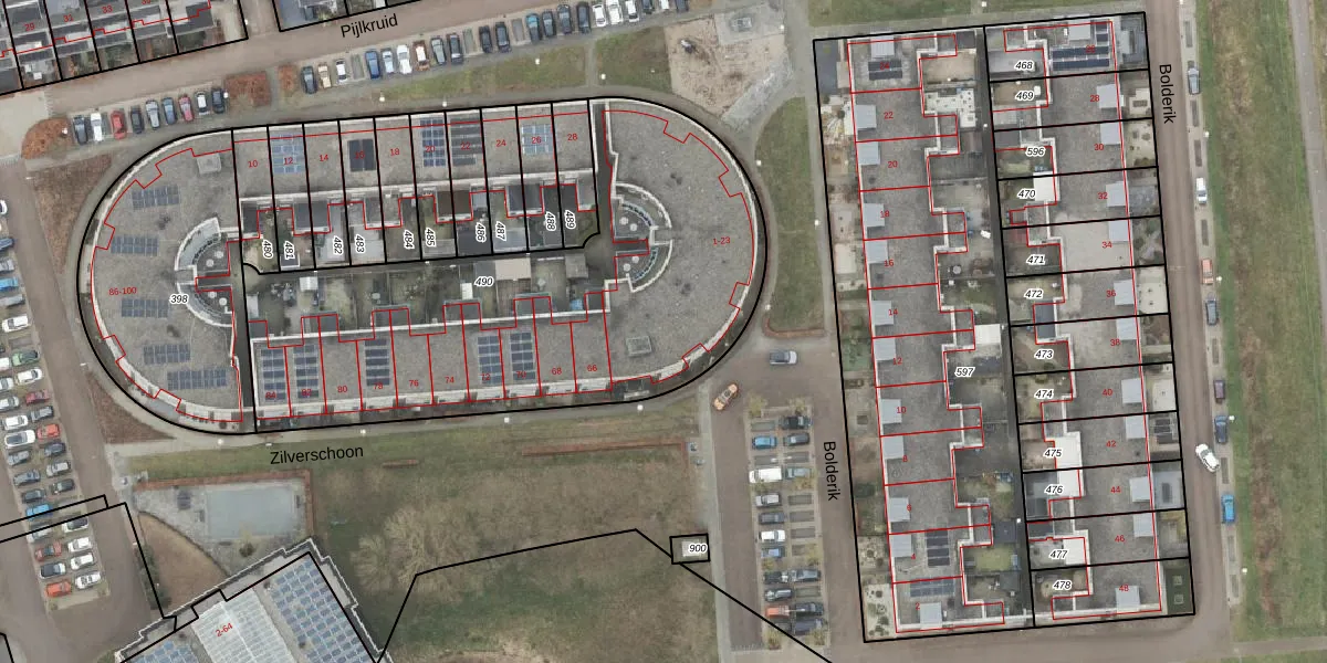 Het perceel waarop Bolderik 1 staat heeft een oppervlakte van 2215 m². Dit is een zeer groot perceel. De perceeloppervlakte wordt geregistreerd door het Kadaster. Gedetailleerde informatie over de maten van dit perceel kunt u vinden in het rapport Kadastrale kaart met maatvoering van Bolderik 1.