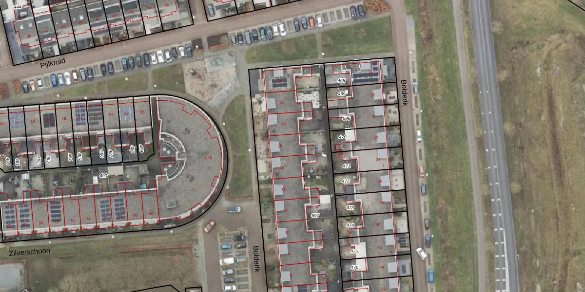 Het perceel waarop Bolderik 18 staat heeft een oppervlakte van 2347 m². Dit is een zeer groot perceel. De perceeloppervlakte wordt geregistreerd door het Kadaster. Gedetailleerde informatie over de maten van dit perceel kunt u vinden in het rapport Kadastrale kaart met maatvoering van Bolderik 18.