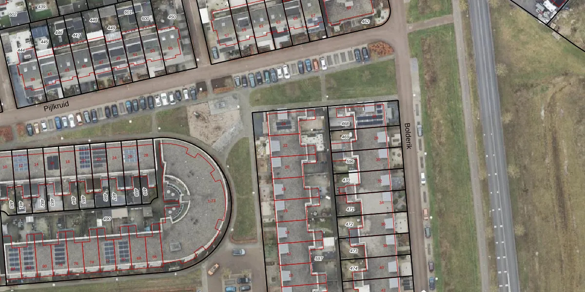Het perceel waarop Bolderik 22 staat heeft een oppervlakte van 2347 m². Dit is een zeer groot perceel. De perceeloppervlakte wordt geregistreerd door het Kadaster. Gedetailleerde informatie over de maten van dit perceel kunt u vinden in het rapport Kadastrale kaart met maatvoering van Bolderik 22.
