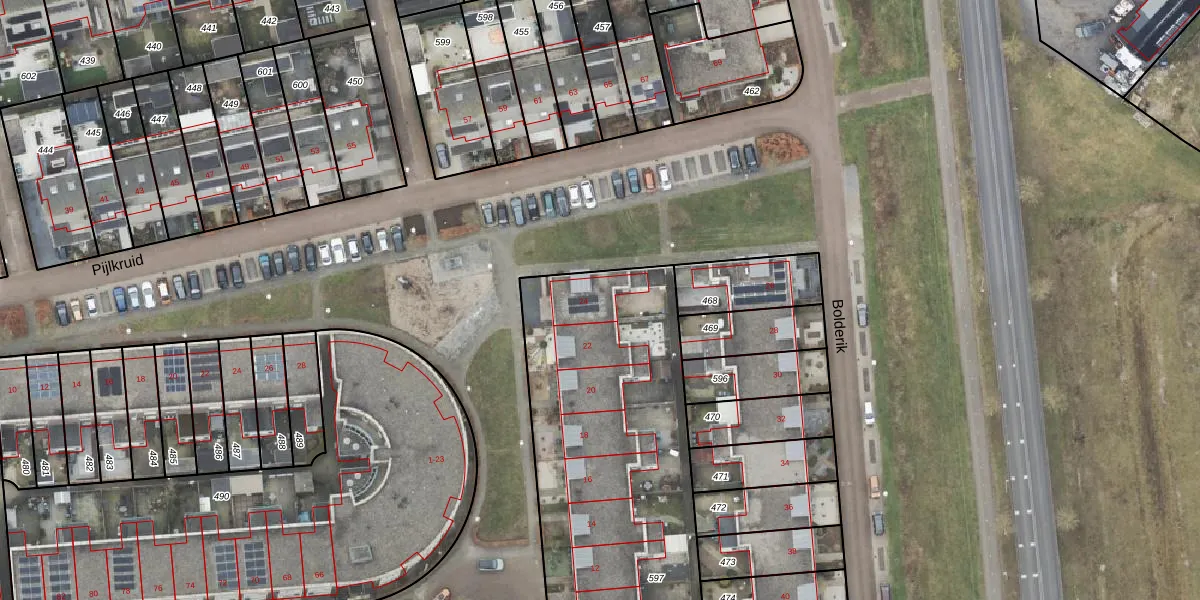 Het perceel waarop Bolderik 24 staat heeft een oppervlakte van 2347 m². Dit is een zeer groot perceel. De perceeloppervlakte wordt geregistreerd door het Kadaster. Gedetailleerde informatie over de maten van dit perceel kunt u vinden in het rapport Kadastrale kaart met maatvoering van Bolderik 24.