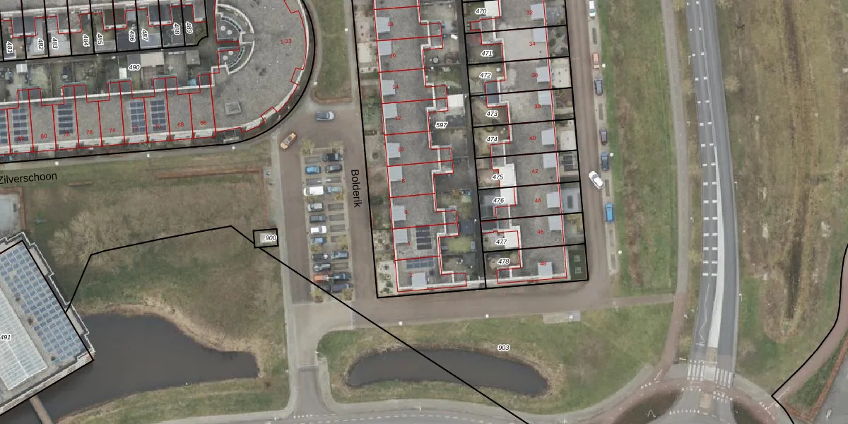 Het perceel waarop Bolderik 6 staat heeft een oppervlakte van 2347 m². Dit is een zeer groot perceel. De perceeloppervlakte wordt geregistreerd door het Kadaster. Gedetailleerde informatie over de maten van dit perceel kunt u vinden in het rapport Kadastrale kaart met maatvoering van Bolderik 6.