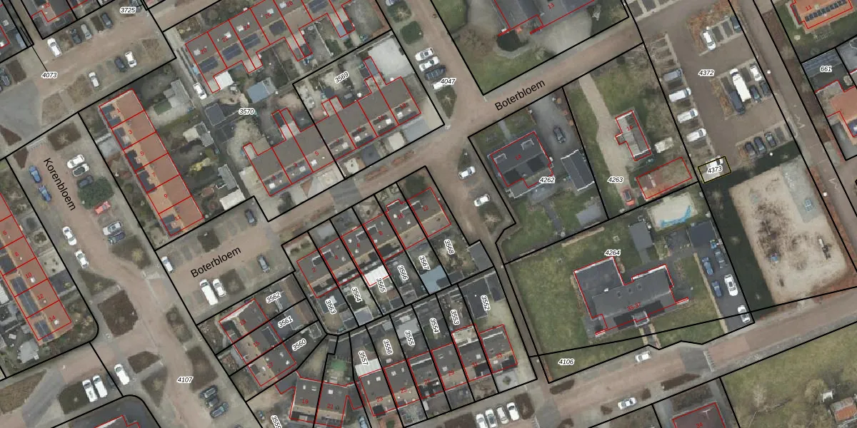 Gebruik de zoekbalk of klik op een perceel voor informatie over de adressen binnen dit perceel.
