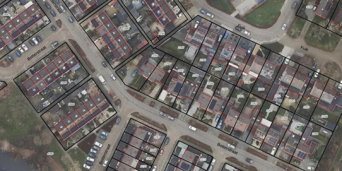 Het perceel waarop Botterstraat 20 staat heeft een oppervlakte van 262 m². Dit is een middelgroot perceel. De perceeloppervlakte wordt geregistreerd door het Kadaster. Gedetailleerde informatie over de maten van dit perceel kunt u vinden in het rapport Kadastrale kaart met maatvoering van Botterstraat 20.