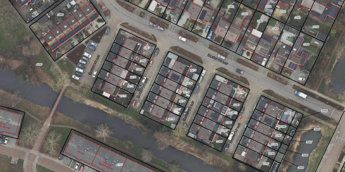 Het perceel waarop Botterstraat 29 staat heeft een oppervlakte van 124 m². Dit is een middelgroot perceel. De perceeloppervlakte wordt geregistreerd door het Kadaster. Gedetailleerde informatie over de maten van dit perceel kunt u vinden in het rapport Kadastrale kaart met maatvoering van Botterstraat 29.