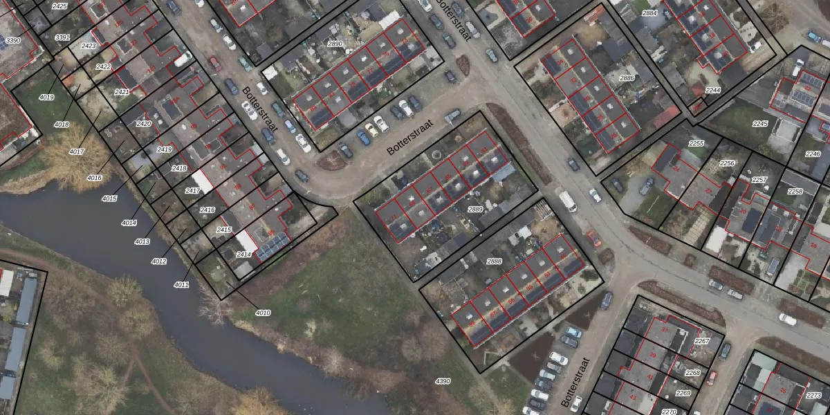 Het perceel waarop Botterstraat 69 staat heeft een oppervlakte van 903 m². Dit is een groot perceel. De perceeloppervlakte wordt geregistreerd door het Kadaster. Gedetailleerde informatie over de maten van dit perceel kunt u vinden in het rapport Kadastrale kaart met maatvoering van Botterstraat 69.