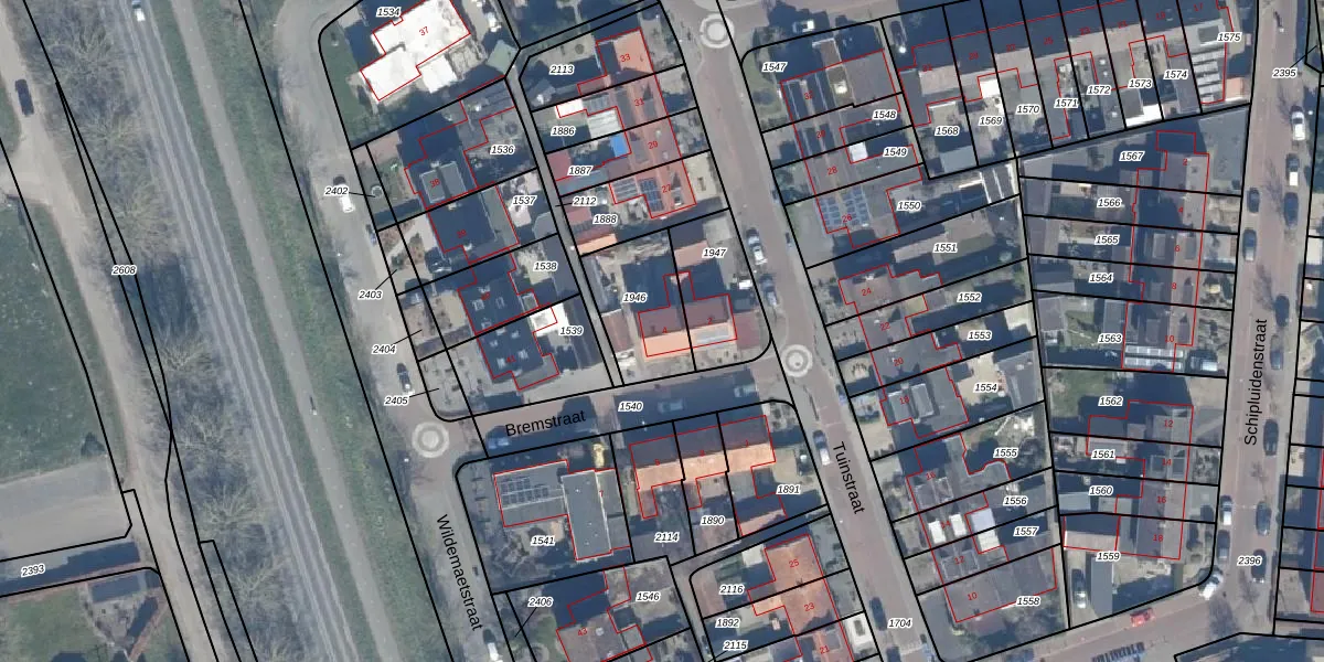 Gebruik de zoekbalk of klik op een perceel voor informatie over de adressen binnen dit perceel.
