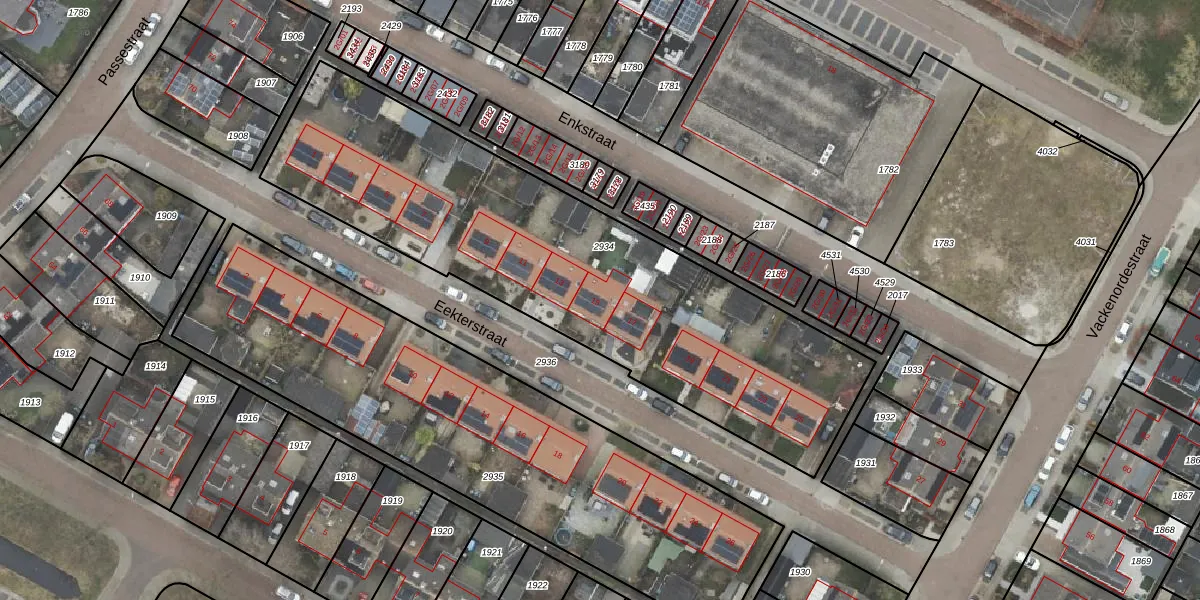 Het perceel waarop Eekterstraat 15 staat heeft een oppervlakte van 2264 m². Dit is een zeer groot perceel. De perceeloppervlakte wordt geregistreerd door het Kadaster. Gedetailleerde informatie over de maten van dit perceel kunt u vinden in het rapport Kadastrale kaart met maatvoering van Eekterstraat 15.