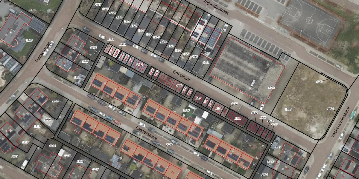 Het perceel waarop Enkstraat 2-G-16 staat heeft een oppervlakte van 91 m². Dit is een klein perceel. De perceeloppervlakte wordt geregistreerd door het Kadaster. Gedetailleerde informatie over de maten van dit perceel kunt u vinden in het rapport Kadastrale kaart met maatvoering van Enkstraat 2-G-16.