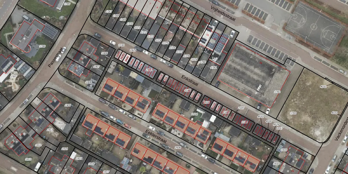 Het perceel waarop Enkstraat 2-G-13 staat heeft een oppervlakte van 91 m². Dit is een klein perceel. De perceeloppervlakte wordt geregistreerd door het Kadaster. Gedetailleerde informatie over de maten van dit perceel kunt u vinden in het rapport Kadastrale kaart met maatvoering van Enkstraat 2-G-13.