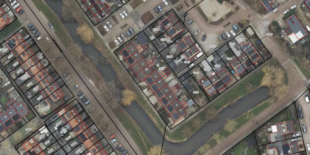 Het perceel waarop Giek 27 staat heeft een oppervlakte van 1465 m². Dit is een zeer groot perceel. De perceeloppervlakte wordt geregistreerd door het Kadaster. Gedetailleerde informatie over de maten van dit perceel kunt u vinden in het rapport Kadastrale kaart met maatvoering van Giek 27.