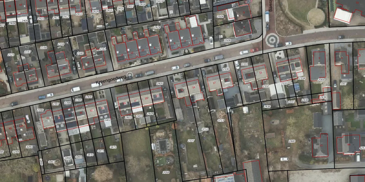 Gebruik de zoekbalk of klik op een perceel voor informatie over de adressen binnen dit perceel.