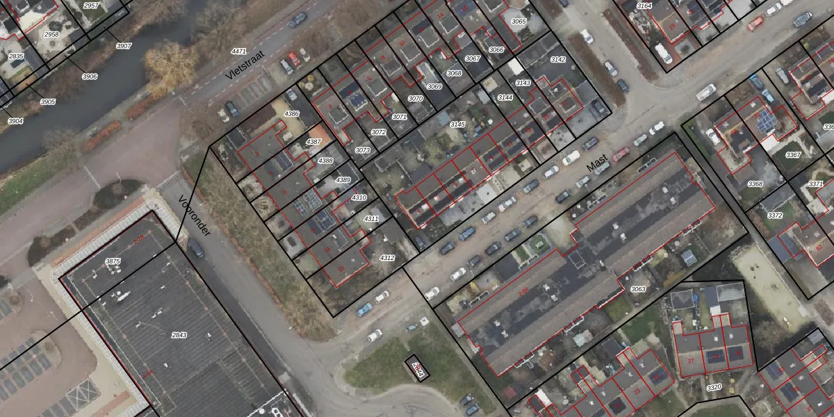 Het perceel waarop Mast 1 staat heeft een oppervlakte van 884 m². Dit is een groot perceel. De perceeloppervlakte wordt geregistreerd door het Kadaster. Gedetailleerde informatie over de maten van dit perceel kunt u vinden in het rapport Kadastrale kaart met maatvoering van Mast 1.