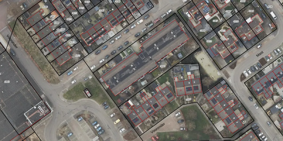 Het perceel waarop Mast 16 staat heeft een oppervlakte van 2163 m². Dit is een zeer groot perceel. De perceeloppervlakte wordt geregistreerd door het Kadaster. Gedetailleerde informatie over de maten van dit perceel kunt u vinden in het rapport Kadastrale kaart met maatvoering van Mast 16.
