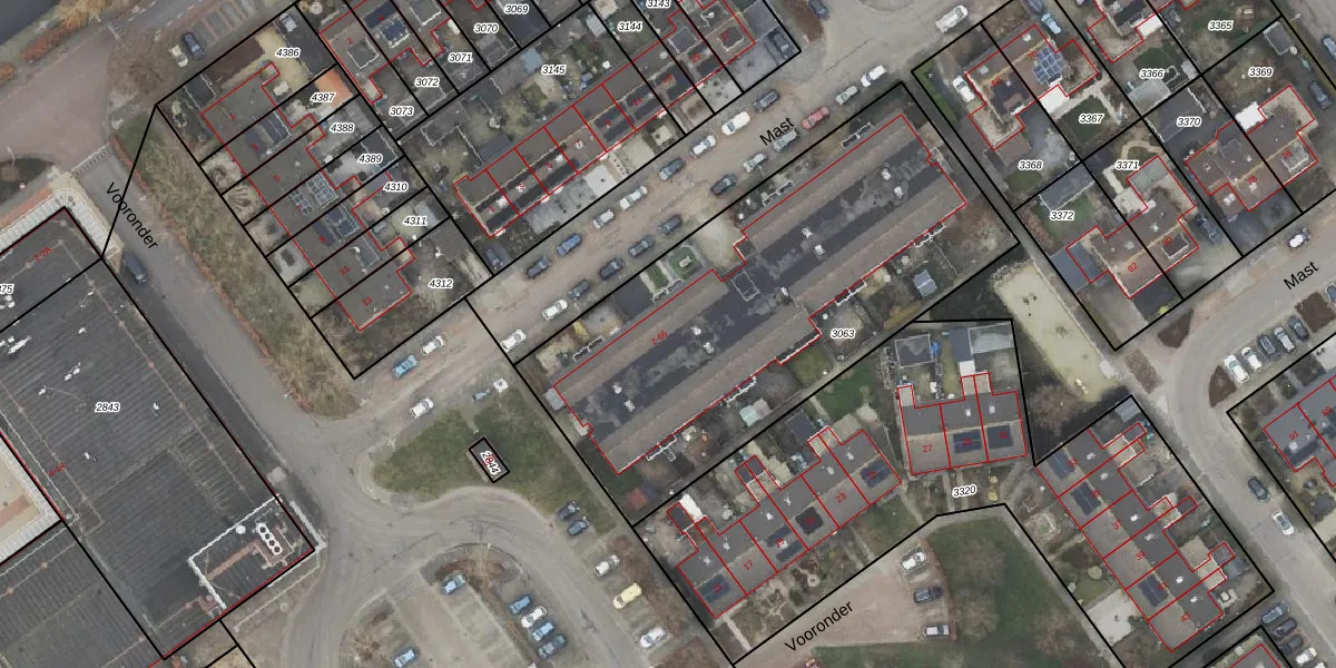Het perceel waarop Mast 42 staat heeft een oppervlakte van 2163 m². Dit is een zeer groot perceel. De perceeloppervlakte wordt geregistreerd door het Kadaster. Gedetailleerde informatie over de maten van dit perceel kunt u vinden in het rapport Kadastrale kaart met maatvoering van Mast 42.