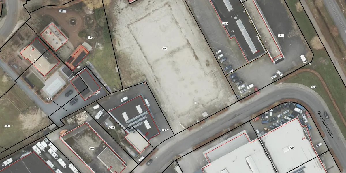 Het perceel waarop Noorderbreedte 14-A staat heeft een oppervlakte van 3865 m². Dit is een zeer groot perceel. De perceeloppervlakte wordt geregistreerd door het Kadaster. Gedetailleerde informatie over de maten van dit perceel kunt u vinden in het rapport Kadastrale kaart met maatvoering van Noorderbreedte 14-A.