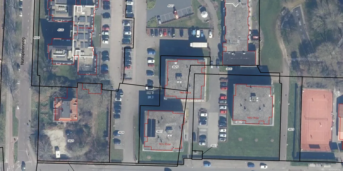 Nunspeterweg 7-B-9 is gelegen op kadastraal perceel EBG01A3825. Deze kadastrale aanduiding is uniek en wordt gebruikt door het Kadaster om eigendomsrechten en andere zakelijke rechten vast te leggen. Het perceel maakt onderdeel uit van de kadastrale gemeente Elburg.