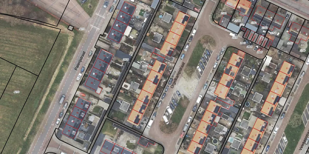 Het perceel waarop Orgelkampstraat 9 staat heeft een oppervlakte van 2165 m². Dit is een zeer groot perceel. De perceeloppervlakte wordt geregistreerd door het Kadaster. Gedetailleerde informatie over de maten van dit perceel kunt u vinden in het rapport Kadastrale kaart met maatvoering van Orgelkampstraat 9.