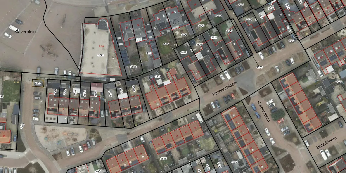 Het perceel waarop Pinksterbloem 21 staat heeft een oppervlakte van 762 m². Dit is een groot perceel. De perceeloppervlakte wordt geregistreerd door het Kadaster. Gedetailleerde informatie over de maten van dit perceel kunt u vinden in het rapport Kadastrale kaart met maatvoering van Pinksterbloem 21.